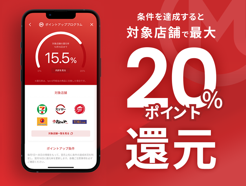 コンビニ、飲食店、スーパーなど対象店舗も多く、