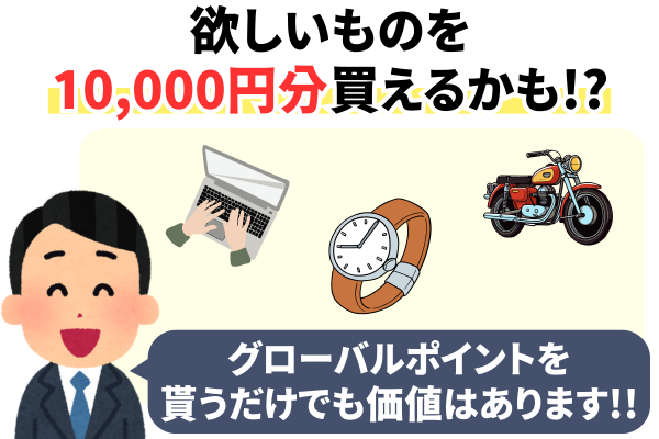 最大10,000円相当のグローバルポイントがもらえるんです!※