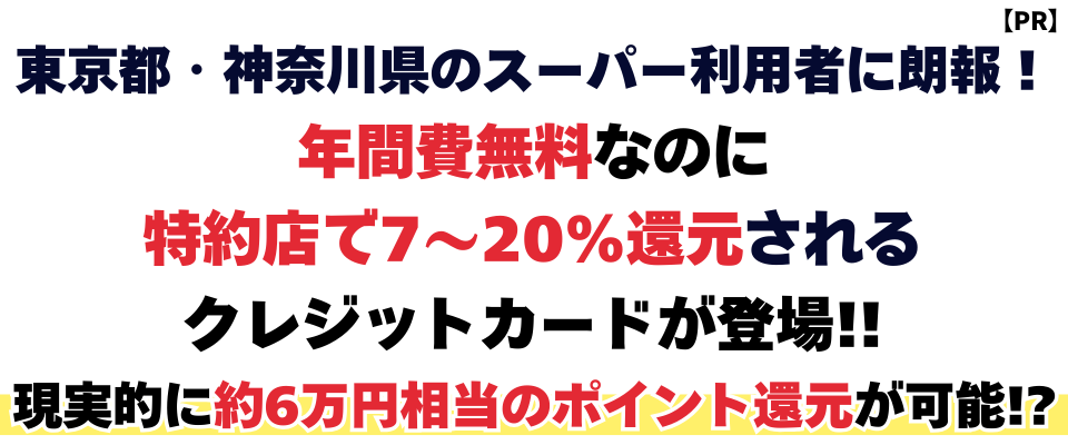 このスーパーで買う生活費全てを、還元率が7〜20%となるお得すぎるカードを発見しました。