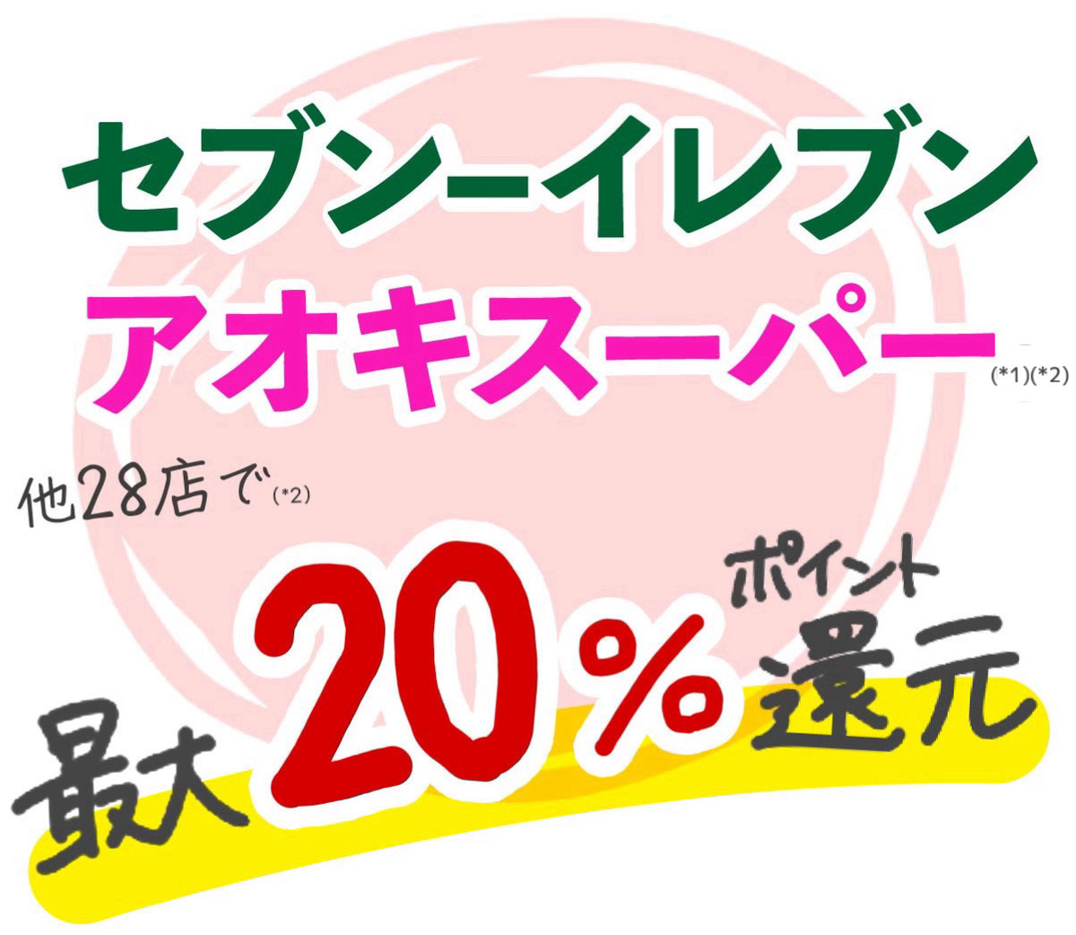 - セブン‐イレブン、アオキスーパーなどの対象店舗で最大20%グローバルポイント還元