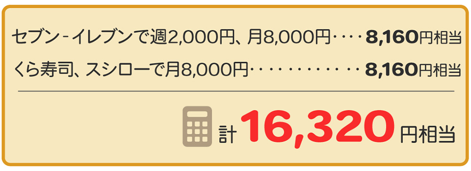 仮に、セブン‐イレブンとスシローに月8,000円使っているとしよう。