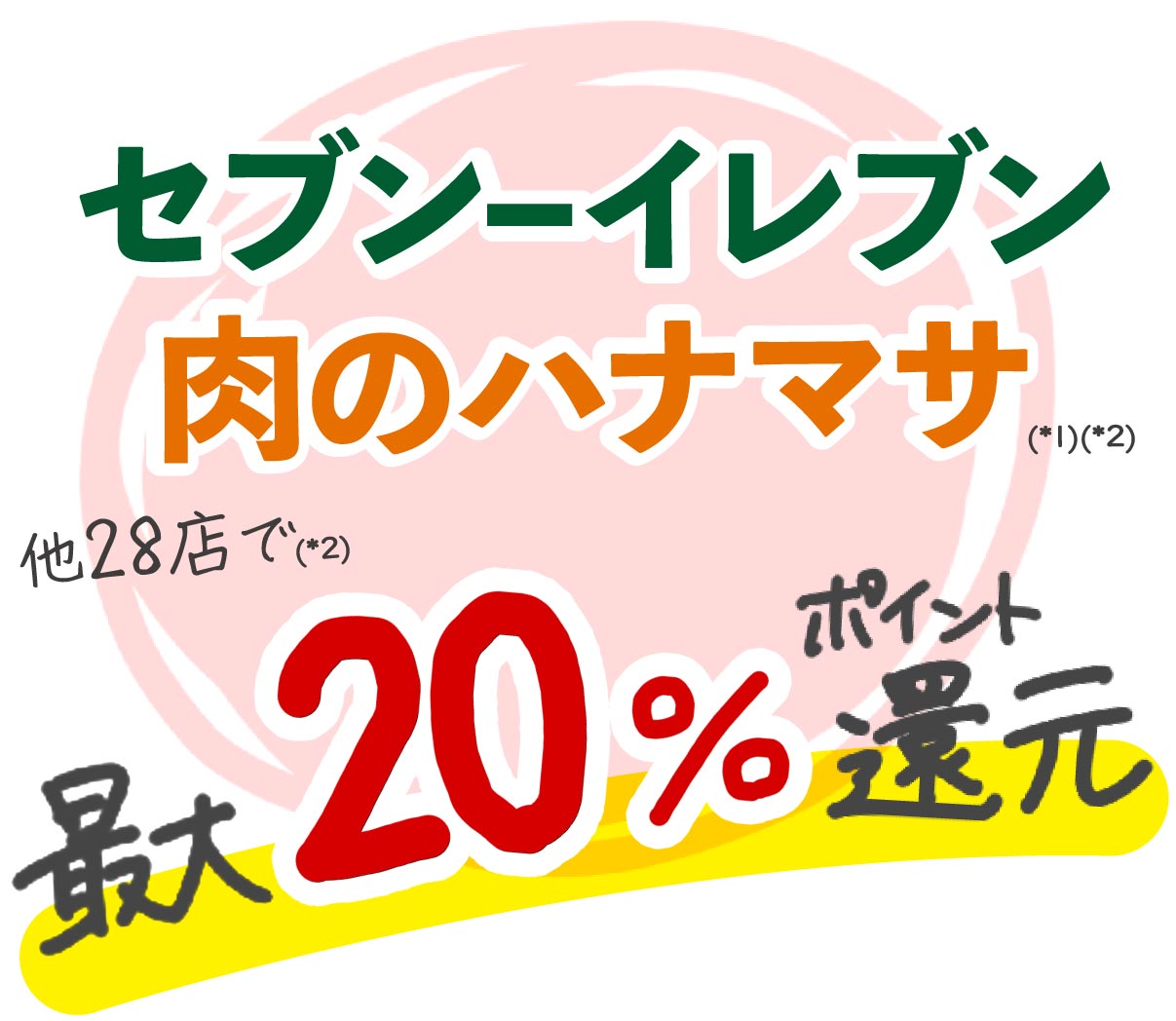 セブン-イレブン、肉のハナマサの他、スシローなども最大20%ポイント還元の対象