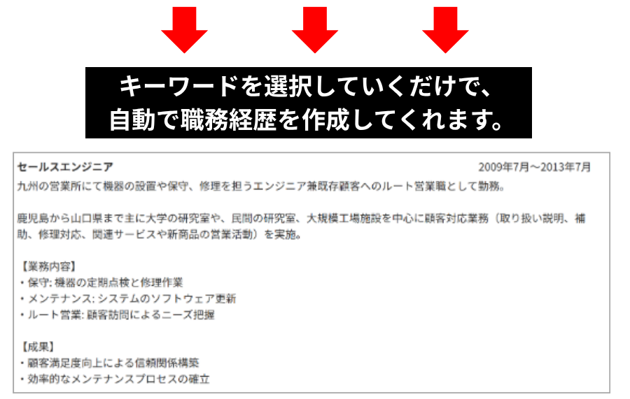 以上の流れで自動的にAIが職務経歴書を作成してくれます。