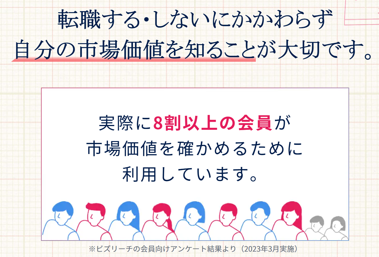 ビズリーチ公式が「市場価値を知るための登録」を推奨しているので、情報収集の一貫として登録しているユーザーの方が多数派です。