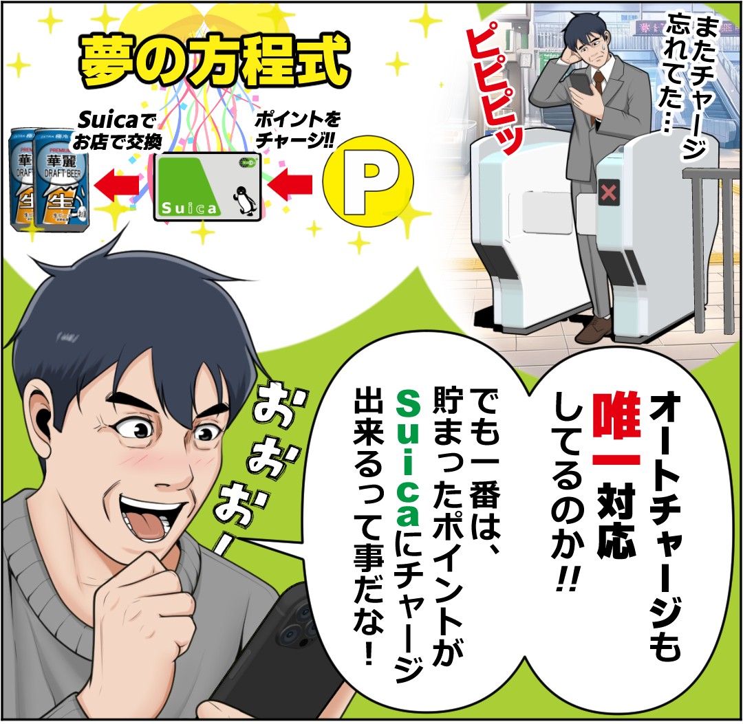 貯まったポイントは1ポイント=1円相当としてSuicaにチャージ!