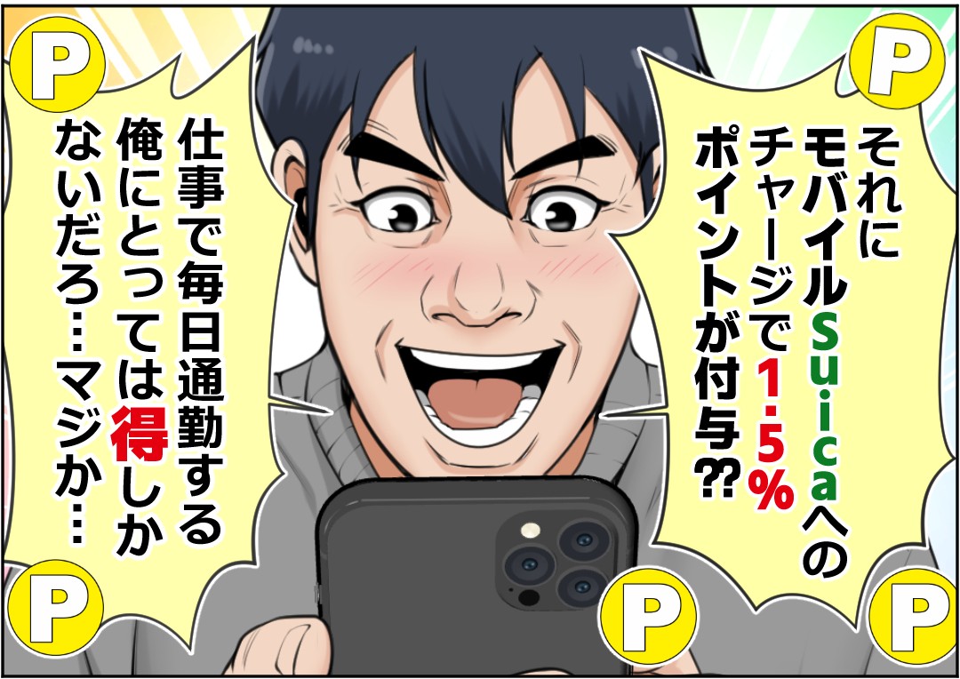 - モバイルSuicaへのチャージで1.5%還元